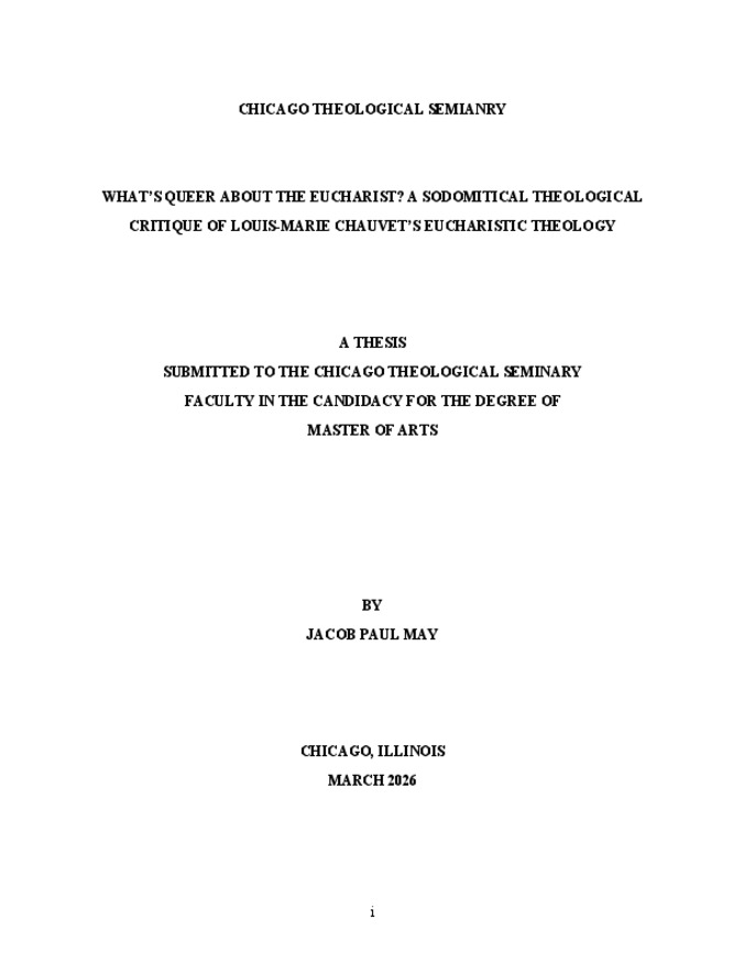 What’s Queer about the Eucharist? A Sodomitical Theological Critique of Louis-Marie Chauvet’s Eucharistic Theology